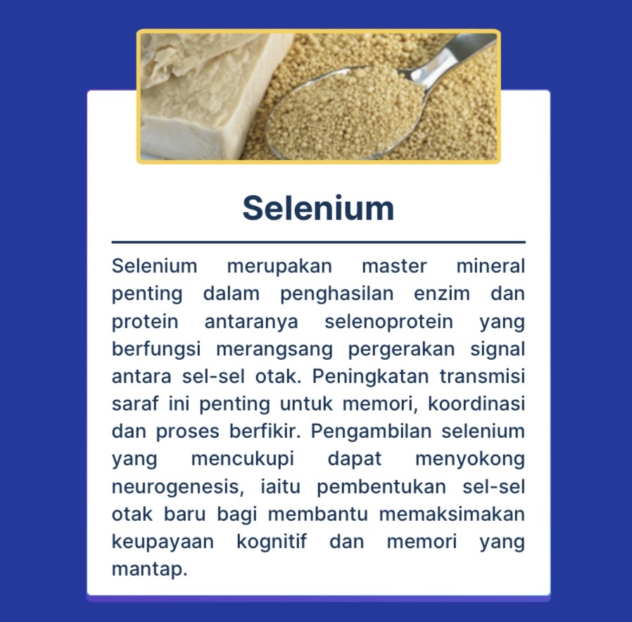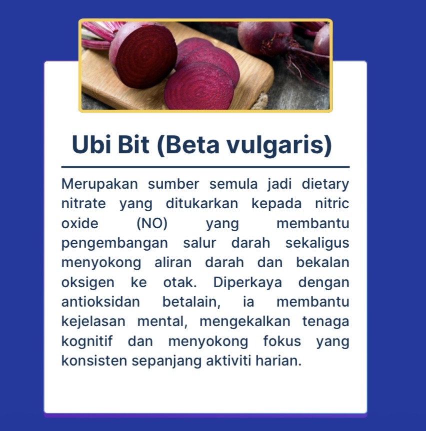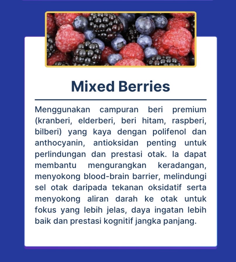 “Di sebalik pemakanan secara seimbang, senaman secara istiqamah, kawalan stres & tidur yang mencukupi, saya telah menemui rahsia untuk meningkatkan kembali fungsi otak dengan kebaikan nutrisi semula jadi yang luar biasa.”