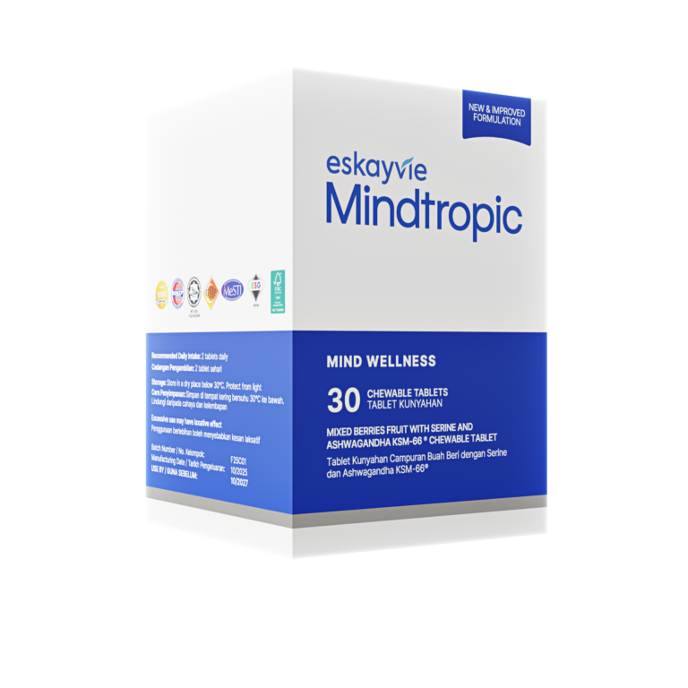 Eskayvie Mindtropic ni kaya dengan bahan adaptogen seperti Ashwagandha KSM-66 dan Bacopa monnieri yang membantu memberikan tidur yang lena. Anda boleh nikmati rasa tenang dan relaks. Stres pun terkawal.